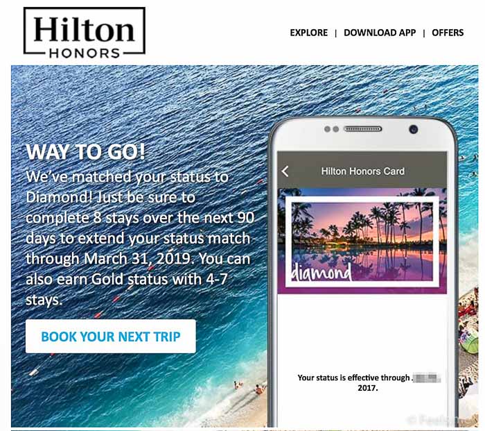 Hilton Diamond Status Match 2017 – Stays Update